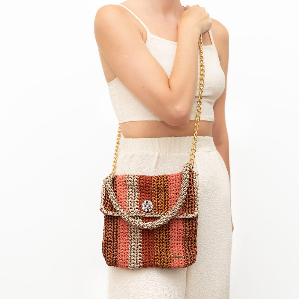Bolsa em fio de algodão com fio dourado